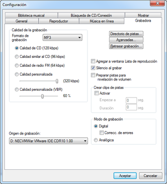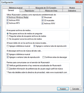 Nota: Al abrir el instalador de MusicMatch Jukebox en Windows 7 pueden aparecer mensajes de error. Sin embargo, el programa puede instalarse y funciona correctamente a pesar de los mensajes.